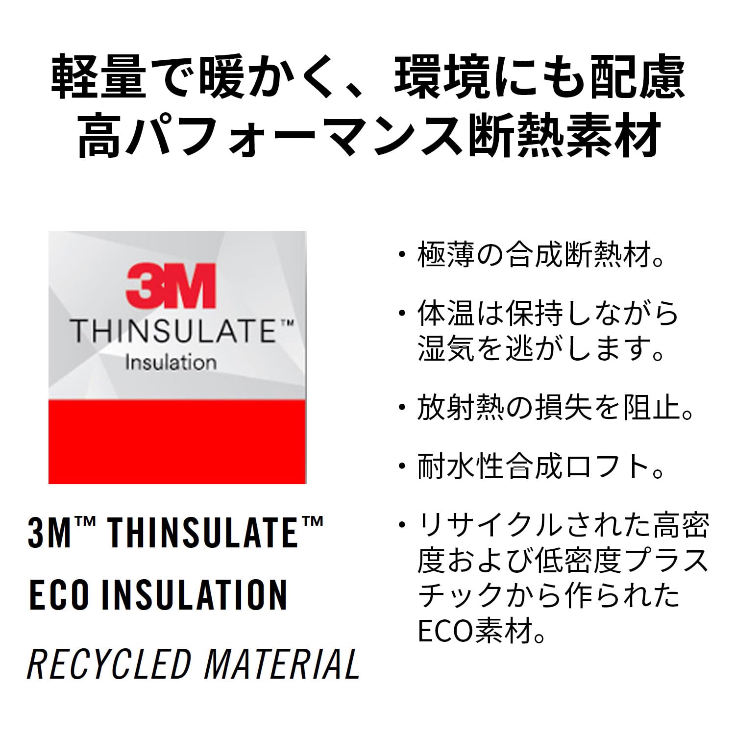 • 環境に配慮: 断熱材は60%がリサイクル素材で、環境への負荷を軽減しながら優れた保温性を提供します。